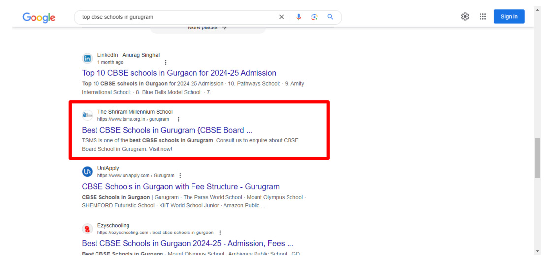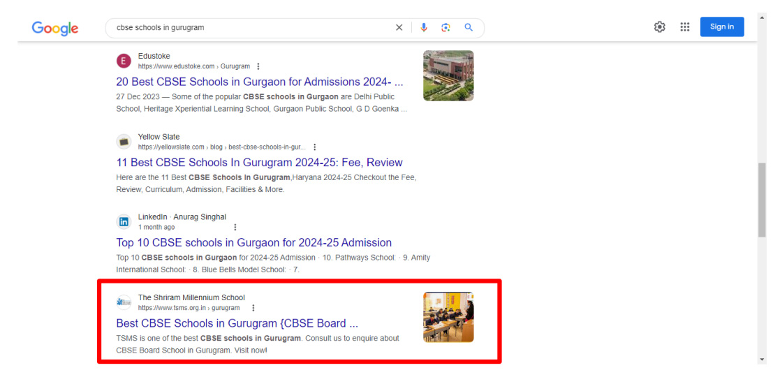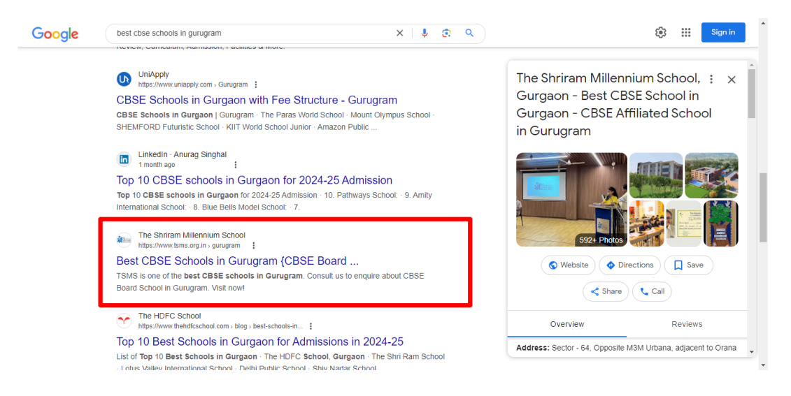educational institution in Gurgaon. The sustained focus on SEO continues to yield positive results, helping TSMS Gurgaon thrive in a competitive educational